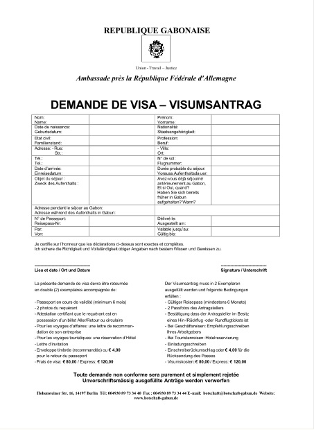 Formulaire de demande de Visa